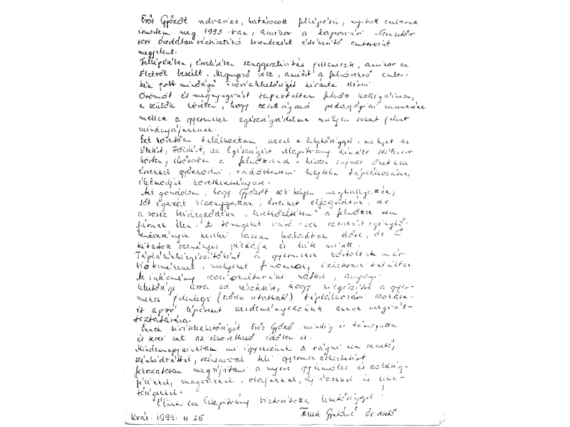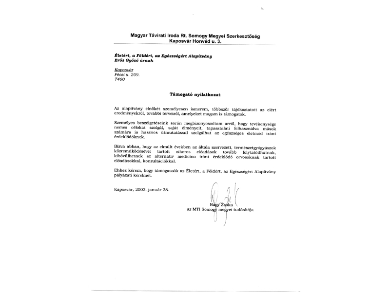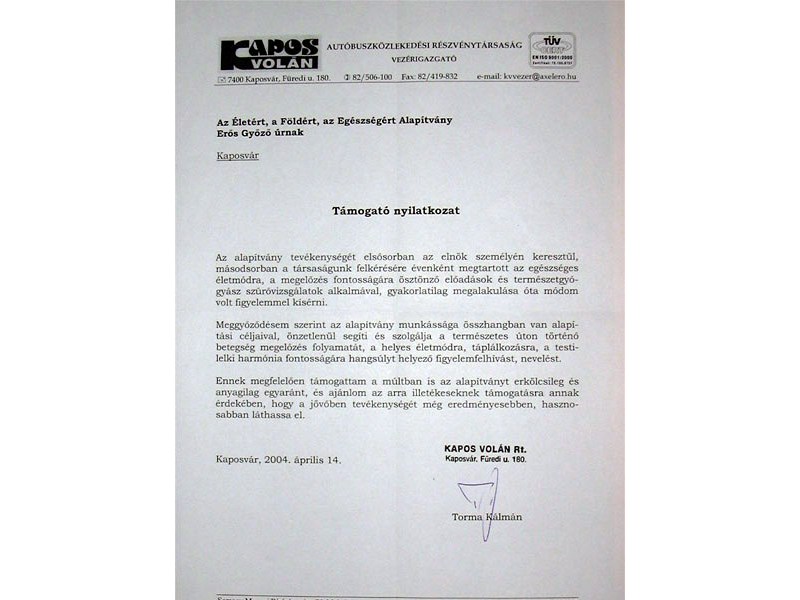 Dr Györgyné Alpár was the Wholesale Pharmaceuticals Manager. She knew my activities well. When it came to the declaration of support, she said: "Győző! This is a pharmaceutical company. What do you think they would say if I supported the activities of a man who propagates natural ways of life and healing? But you know what? I'm going to retire soon anyway, at least..." - and issued a statement of support. Thank you!