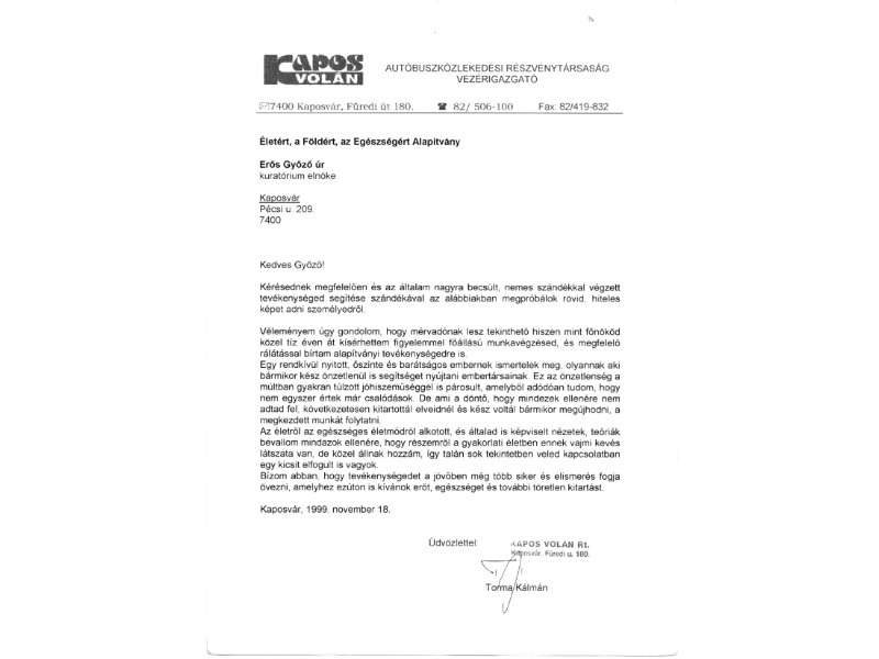Kálmán Torma is the director of Kapos Volán RT. I have already written about him. Here I just thank you again for everything.