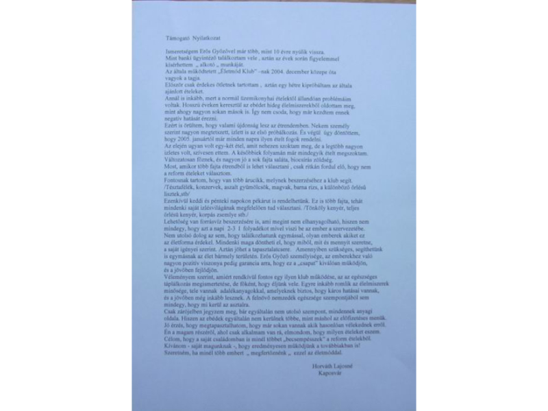 - Évek óta, amióta így táplálkozom, nem voltam beteg (előtte évente legalább kétszer nátha stb.).